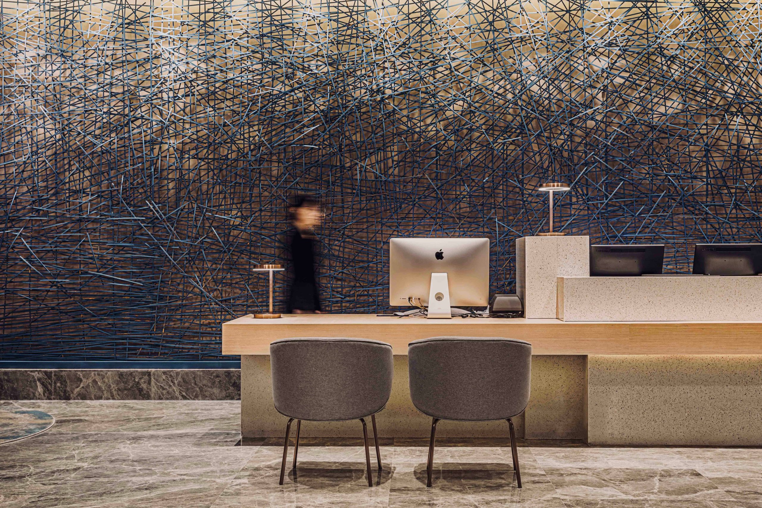 The bamboo and rattan applied to all guestroom headboards are in the same pattern as those in the lobby, but with different dimensions and thickness. Floated by concealed lights, it aims to provide guests with a peaceful environment and an elegant atmosphere.